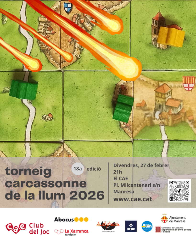 El torneig, en el marc de la Llum, se celebrarà divendres 27 de febrer, a les 21h, a l’Espai Milcentenari El 18è Torneig Carcassonne de la Llum de Manresa torna a l’Espai Milcentenari de la mà del Club del Joc del CAE, en una edició que recupera l’horari nocturn. La competició tindrà lloc el divendres […]