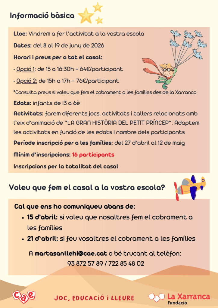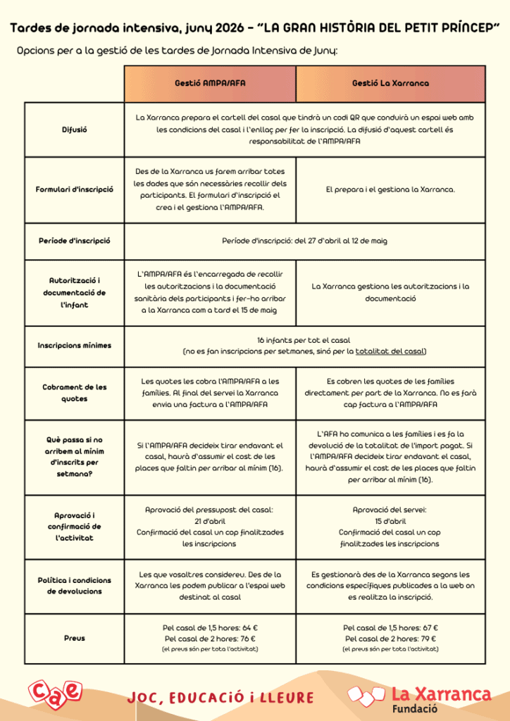 LA PROPOSTA DEL CAE PER ALS CASALS D’INTENSIVA DE JUNY: